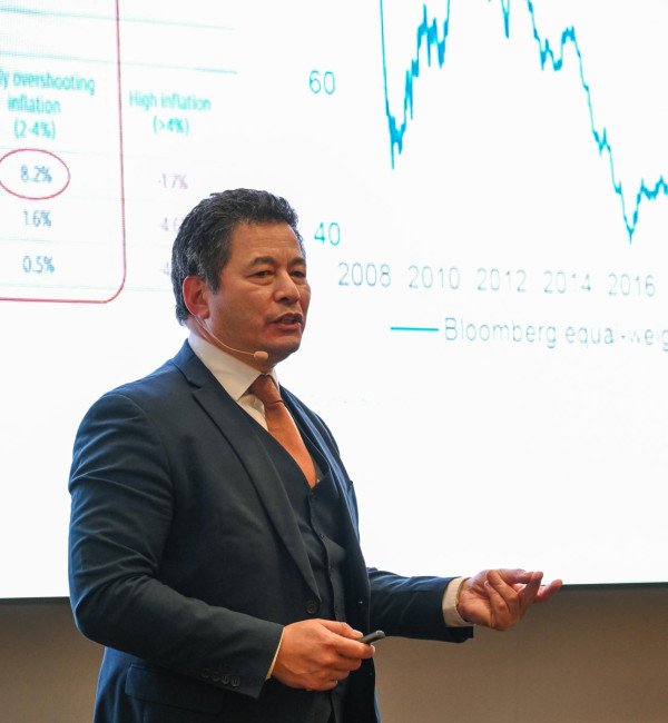 Au cours de cette conférence introduite par Guillaume Rose, CEO du MEB, puis par Eric Aubin pour BNP Paribas Monaco, Edmund Shing a mis en exergue le fait que les gouvernements comme les banques centrales joueront un rôle essentiel l’an prochain, grâce à différentes mesures de soutien destinées à dynamiser l’économie. Cette action devrait favoriser la croissance, tout en maintenant une inflation un peu plus élevée qu’au cours de la dernière décennie précédant le pic 2021-2023.