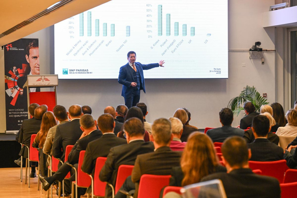 Le Monaco Economic Board (MEB), en partenariat avec BNP Paribas Monaco, a reçu au Yacht Club de Monaco jeudi 4 décembre, Edmund Shing, Global Chief Investment Officer de BNP Paribas Wealth Management. Devant les membres du MEB, il a présenté de manière claire et pédagogique les grandes tendances économiques et les orientations d’investissement qui devraient marquer l’année 2026.
