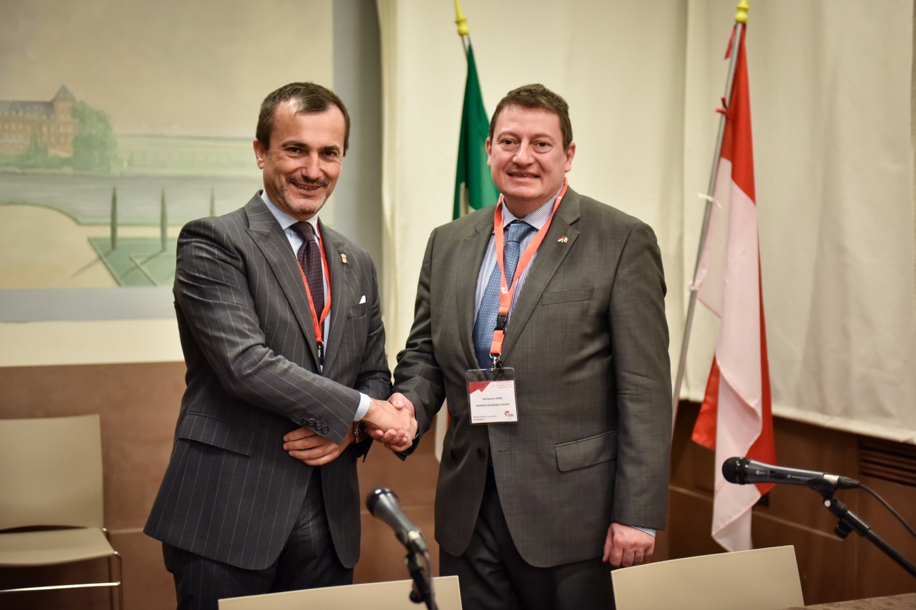 de G. à D. signature du protocole d’accord entre l’Unione Industriale Torino (Dario Galina, Président) et le Monaco Economic Board (Guillaume Rose, Directeur Général Exécutif).